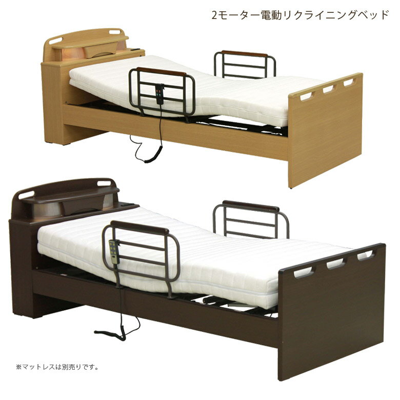 【4日20:00~10%offクーポン有】 リクライニングベッド 電動リクライニングベッド シングル 介護 介護ベッド 宮付き 2モーター バックスライド 電動ベッド 選べる2色 木製ベッド おすすめ フレームのみ 木製 ベッドフレーム ベッド ライトブラウン ダークブラウン